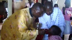 Orthodox Church in Kenya Bishop Athanasios Akunda distributing Holy communion. Later hands over the Chalice to Fr Methodios JM Kariuki Director of Orthodox mission Kenya- St Barnabas Orphanage and school.