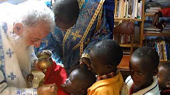 Archbishop Makarios Serving Holy Communion to children at St Barnabas Orphanage and School Orthodox, Kenya